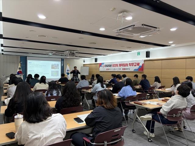 (경기=NSP통신) 조현철 기자 = 경기 오산시(시장 이권재)가 16일 오산시청 물향기실에서 본청 및 산하기관 발주 담당자 45명을 대상으로 ‘2025년 계약심사 직무교육’을 실시했다.