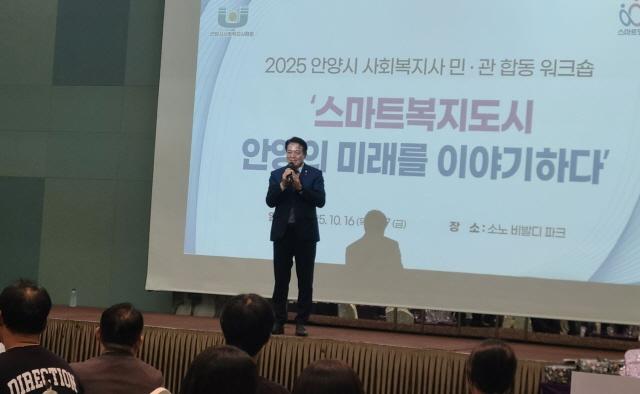 NSP통신-16일 최대호 안양시장이 사회복지 민관 합동 워크숍에서 인사말을 하고 있다. (사진 = 안양시)