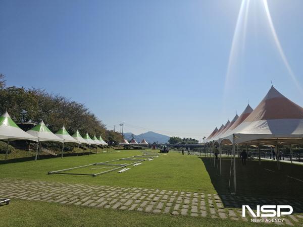 NSP통신-광양전통숯불구이축제를 개최하기 위해 외부 상인들이 텐트를 치고 있다. (= 강현희 기자)