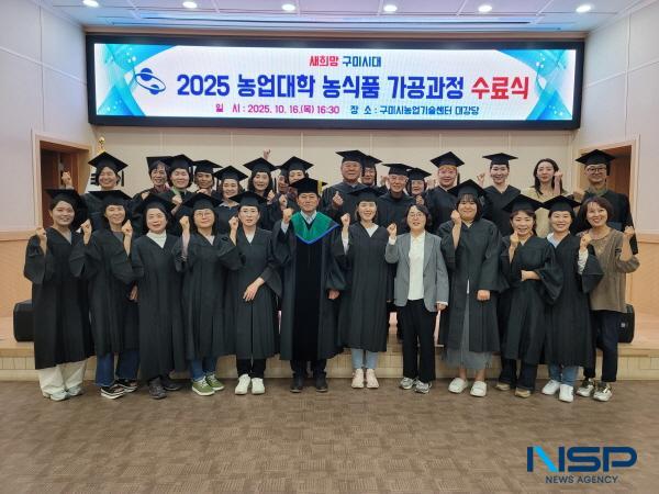 (경북=NSP통신) 조인호 기자 = 구미시는 지난 16일 농업기술센터에서 ‘구미시 농업대학 농식품 가공과정 수료식’을 열고 교육을 마친 수료생 29명에게 수료증을 전달했다. 교육 중 우수한 성과를 보인 6명에게는 별도의 표창이 수여됐다.