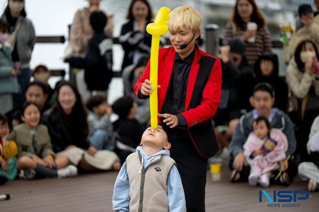 NSP통신-김포라베니체 수상공원 중앙 광장에서 마술 버스킹이 진행되고 있는 모습. (사진 = 조이호 기자)