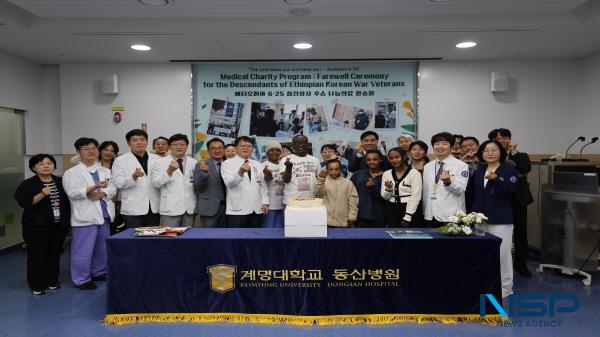 (경북=NSP통신) 김대원 기자 = 계명대학교 동산의료원(의료원장 조치흠)이 지난 15일 ‘에티오피아 6·25전쟁 참전용사 후손 나눔의료 환송회’를 열었다.