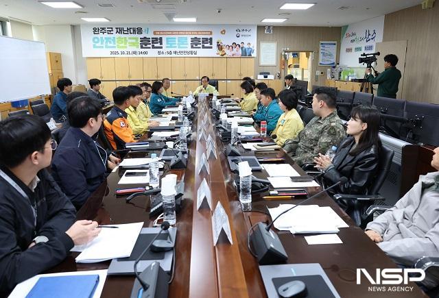 (전북=NSP통신) 김광석 기자 = 전북 완주군은 21일 재난안전상황실과 고산자연휴양림 일원에서 ‘2025년 재난대응 안전한국훈련’을 진행했다고 밝혔다.