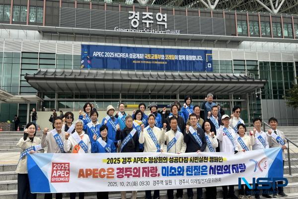 (경북=NSP통신) 조인호 기자 = 경주시 미래발전자문위원회는 지난 21일 경주역 일대에서 2025 APEC 정상회의의 성공개최를 기원하는 시민참여 캠페인을 실시했다.