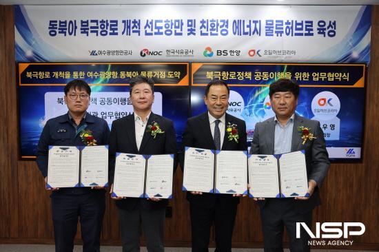 (전남=NSP통신) 김성철 기자 = 여수광양항만공사(사장 직무대행 황학범, 이하 ‘공사’)는 공사 본사에서 한국석유공사, BS한양, 오일허브코리아여수와 '북극항로 개척 정책과제 공동 이행을 위한 업무협약'을 체결했다고 밝혔다.