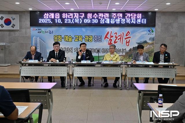 (전북=NSP통신) 김광석 기자 = 전북 완주군의회 유의식 의장이 23일 삼례읍 행정복지센터에서 ‘하리지구 침수 피해 대책 간담회’를 실시하고 매년 반복되는 침수로 큰 피해를 입고 있는 딸기농가 등 지역 주민들의 생생한 목소리를 청취했다.