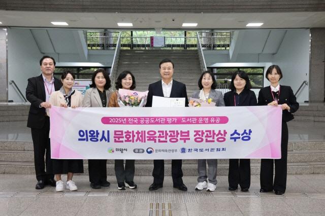 의왕시 중앙도서관이 문화체육관광부가 실시한 ‘2025년 전국 공공도서관 운영 평가’에서 우수기관으로 선정됐다. 사진은 수상 기념촬영 모습. (사진 = 의왕시)
