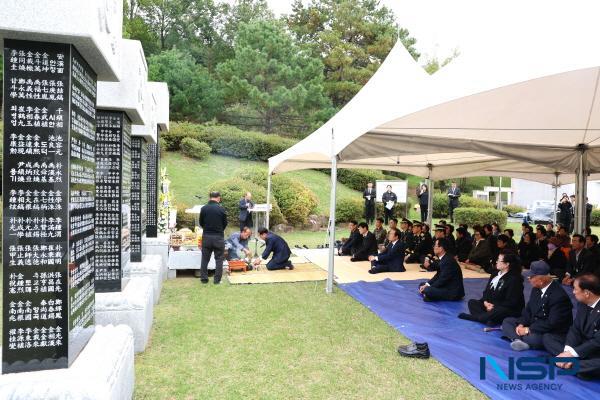 NSP통신-의성군은 지난 22일 호국동산 내 한국전쟁의성전몰장병위령비 앞에서 나라를 위해 희생한 호국영령들의 넋을 기리기 위한 한국전쟁 전몰군경 추모제를 개최했다. (사진 = 의성군)