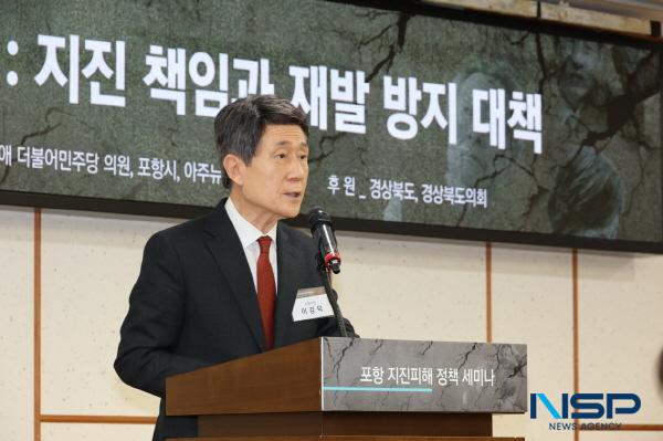 (경북=NSP통신) 조인호 기자 = 포항시와 아주뉴스코퍼레이션이 공동주최한 ‘포항 지진피해 정책포럼’이 23일 서울 여의도 국회 의원회관에서 ‘포항, 다시 묻다: 지진 책임과 재발 방지 대책’을 주제로 열렸다.