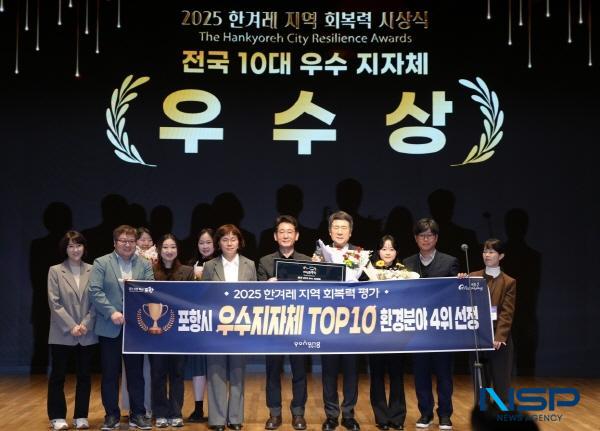 (경북=NSP통신) 조인호 기자 = 포항시가 23일 서울 중구 대한상공회의소 국제회의장에서 열린 ‘2025 한겨레 지역회복력 평가’ 시상식에서 전국 10위를 차지하며 도시 회복력(Resilience) 우수 지방자치단체로 선정됐다. 이는 경북 22개 기초자치단체 가운데 가장 높은 순위다.