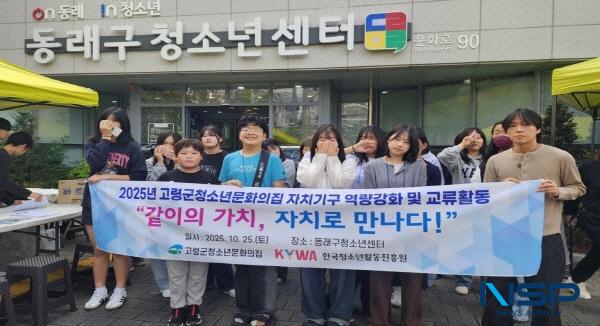 (경북=NSP통신) 김대원 기자 = 고령군(군수 이남철) 청소년문화의집은 지난 25일 청소년자치기구의 자율적 운영 역량 강화와 상생의 청소년문화 조성을 목적으로 부산 동래구청소년센터를 방문해 ‘같이의 가치, 자치로 만나다!’라는 주제로 교류 및 문화탐방 활동을 성황리에 진행했다.