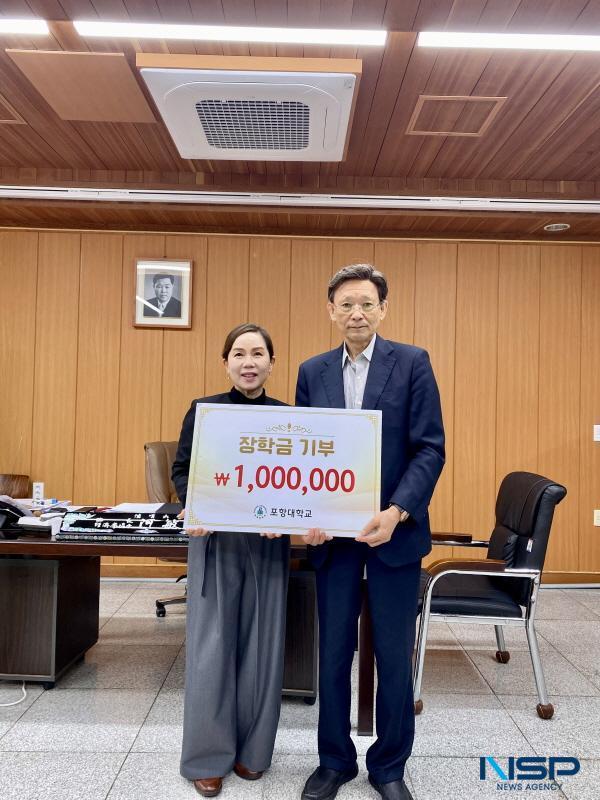 (경북=NSP통신) 조석현 기자 = 포항대학교(총장 하민영)는 지난 24일 총장실에서 하민영 총장이 직접 기부한 릴레이 장학금 전달식을 개최했다.