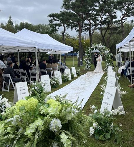 빛가람호수공원에서 열린 2호 커플의 예식은 가을비 속에서도 영화 ‘어바웃타임’을 떠올리게 하는 따뜻한 분위기 속에 진행됐다.