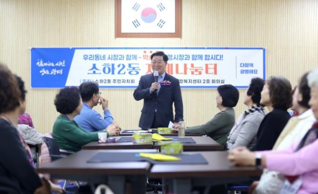 박 시장은 30일 각 동을 순회하며 지역 현안 사항을 살피고 시민들과 직접 소통하는 ‘우리동네 시장실’로 소하2동 지역 주민들을 만났다.