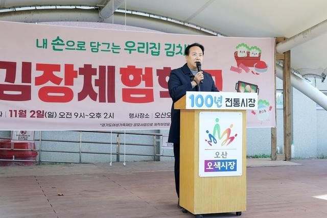 NSP통신-2일 이권재 오산시장이 김장체험학교에서 인사말을 하는 모습. (사진 = 오산시)