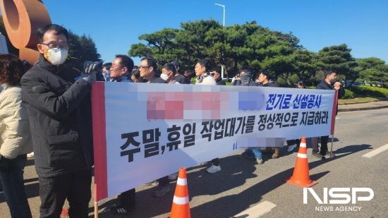 (전남=NSP통신) 김성철 기자 = 광양제철소 소본부 앞에서 광양제철소 전기로 신설 공사 중 토목공사 하도급사인 A사가 미수금액 대책 마련을 촉구했다.