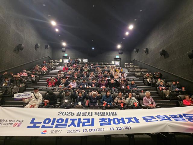 (강원=NSP통신) 조이호 기자 = 강원 강릉시(시장 김홍규)가 노인일자리 및 사회활동지원사업에 참여 중인 어르신들에게 문화향유의 기회를 제공하기 위해 3일부터 오는 13일까지 9일간 영화관람 문화활동을 진행한다.