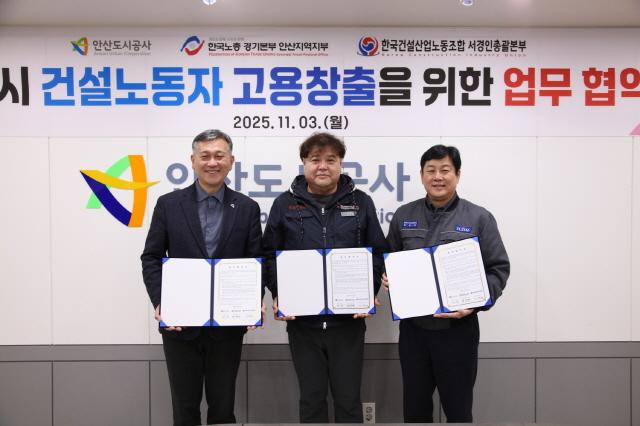 3일 체결된 이번 협약은 안산도시공사가 참여하는 장상, 의왕·군포·안산 등 3기 신도시 건설사업을 통해 지역 건설노동자에게 양질의 일자리를 제공하고, 지역경제를 활성화하기 위해 마련됐다.