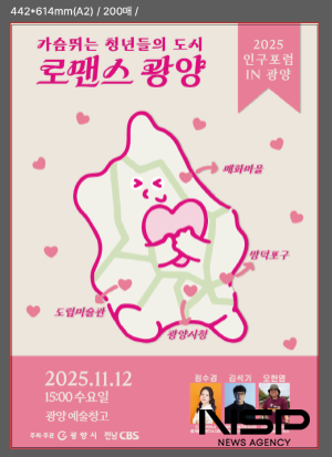 (전남=NSP통신) 김성철 기자 = 광양시는 오는 11월 12일 오후 3시, 광양예술창고에서 ‘2025년 인구포럼 in 광양’을 개최한다고 밝혔다.