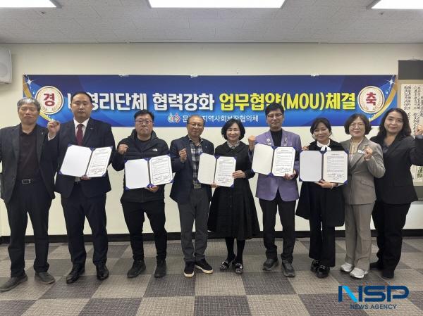 (경북=NSP통신) 김대원 기자 = 문경시지역사회보장협의체(민간위원장 김경범)는 지난 3일 협의체 사무국에서 점촌중앙라이온스클럽(회장 이준호), 점촌이화라이온스클럽(회장 김예림), 점촌라이온스클럽(회장 김동운), 점촌청년회의소(회장 남일현)와 비영리단체 협력 강화를 위한 업무협약(MOU)을 체결했다.
