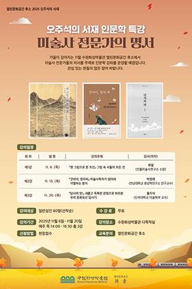 수원 출신 미술사학자 오주석(1956~2005)의 기증자료가 전시된 ‘오주석의 서재’의 가치를 이어가며 시민과 함께 미술과 인문학을 나누는 강의다.