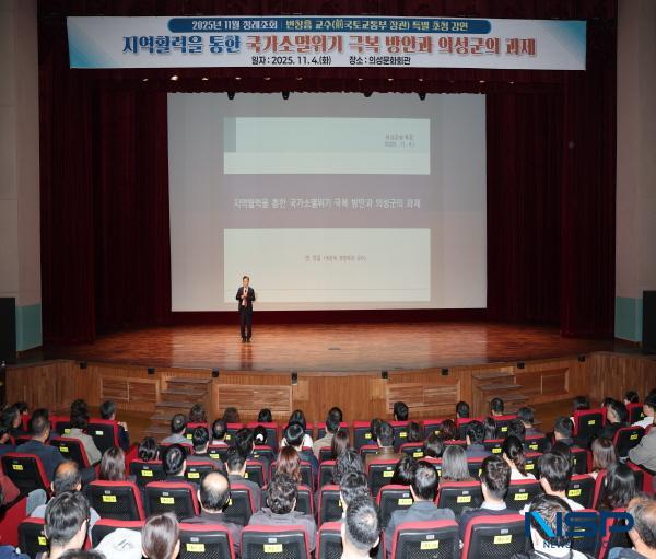 이번 정례조회는 인구감소와 지역소멸 위기가 가속화되는 상황 속에서 자치단체가 주도적으로 대응할 수 있는 정책 방향과 실행 전략을 모색하기 위해 마련됐다. 이를 위해 세종대학교 변창흠 교수를 초청해 ‘지역활력을 통한 국가소멸위기 극복 방안과 의성군의 과제’를 주제로 특강을 진행했다.