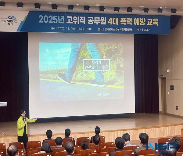 NSP통신-영덕군은 지난 4일 군청 대회의실에서 5급 이상 고위직 공무원을 대상으로 성희롱, 성폭력, 성매매, 가정폭력 등 4대 폭력 예방 교육을 시행했다. (사진 = 영덕군)