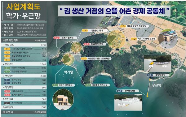 학가항은 어업인 안전쉼터, 어항내 진입도로 확장, 어업활동 지원시설 등 생활 SOC를 확충하게 되며 우근항은 선착장 연장 및 물양장 확장 등 어항시설 정비를 추진할 계획이다.