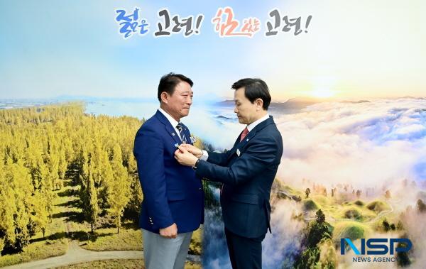 (경북=NSP통신) 김대원 기자 = 지난 3일 경북향군회관에서 진행된 ‘2025년 정부포상 시상식’에서 고령군재향군인회 문광주 회장이 안보의식 고취와 지역사회 발전에 기여한 공로로 국무총리 표창을 수상하는 영예를 안았다.