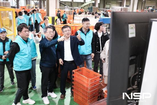NSP통신-이돈성 조합장과 정기철 조합장 유통 시스템 운영 현장 확인 (사진 = 동광양농협)