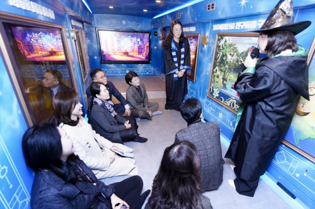 ‘찾아가는 수원 기후마법학교’는 2024년 1월부터 추진된 수원시 이동환경교실 체험차량 제작사업으로 수소전기버스를 개조해 체험형 환경교육 공간으로 만든 것이다.