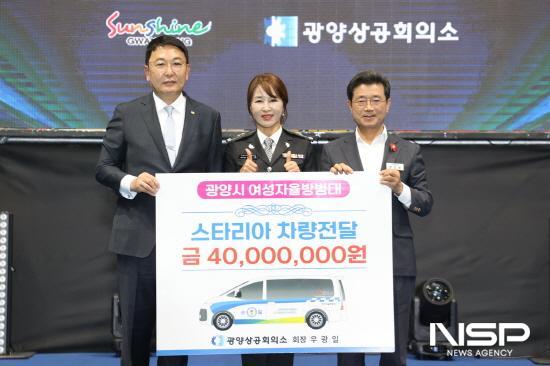 승합차량 전달식은 우광일 회장이 사재 4000만원을 출연해 광양시 관내 범죄예방과 방범활동 지원차량으로 쓰일 스타리아 차량을 광양시 여성자율방범대에 전달하는 방식으로 진행됐다.