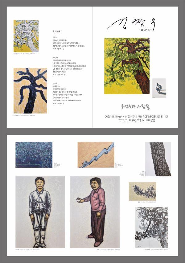 작가의 또 다른 장기인 인물화도 다수 선보이고 있는 가운데 어머니와 해남 사람들은 물론 광복80주년을 맞아 선보인 무명 의병 얼굴을 담은 그림들은 함께 나라를 지킨 수성송의 또 다른 의미를 그려내고 있다. 갑옷과도 같은 세밀한 소나무 껍질과 화면밖을 뛰쳐 나갈 듯이 생동하는 줄기, 사람들의 모습을 하나의 작품처럼 배치해 전시한 전시회 구성도 이채롭다.