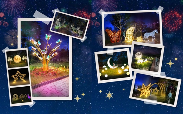 나비가 날아다니는 정원, 음악이 흐르는 음율 다리, 반딧불이 가득한 숲속길, 호수에 떨어진 별똥별 등 호수공원 여울다리에서 산책길까지 이어지는 빛의 동선이 구성돼 관람객은 겨울밤 속 빛의 이야기를 체험하게 된다.