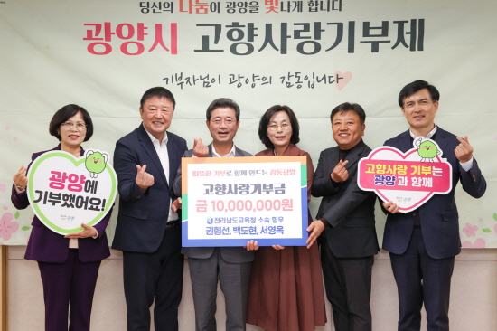 전남교육청 광양출신 향우 3인, 광양시에 고향사랑기부금 1000만 원 기부