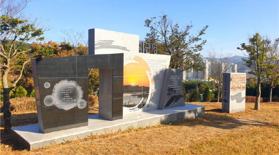 이곳에는 이상문학상 수상작 ‘어두운 기억의 저편’을 책 형태로 형상화한 조형물과 문학비가 소박하게 조성돼 있다.
