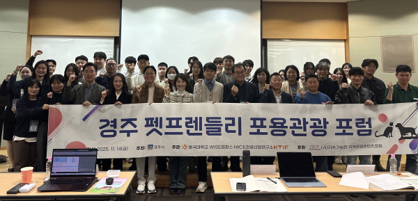 (경북=NSP통신) 조인호 기자 = 동국대 WISE캠퍼스 MICE관광산업연구소가 지난 14일 경주 교원드림센터에서 반려동물 동반 여행의 증가와 사회적 요구에 맞춰 반려인과 비반려인 모두가 편안하게 관광을 즐길 수 있는 ‘포용 관광 환경’ 조성을 위해 ‘경주 펫프렌들러 포용관광 포럼’을 개최했다.