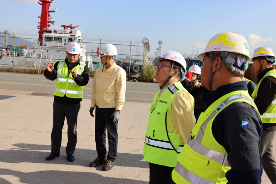 홍상표 운영부사장은 친환경, 저탄소 항만 하역장비 사용하는 하역장을 방문해 DPF 부착, 전기 YT(야드트랙터) 및 전기 TC(트랜스퍼 크레인)운영 등 비상저감조치 이행 상황을 직접 점검했다.