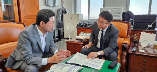 NSP통신-정인화 광양시장(좌) 한병도 국회 예산결산특별위원회 위원장(우) 국고 예산사업과 주요 현안사업설명 (사진 = 광양시청)