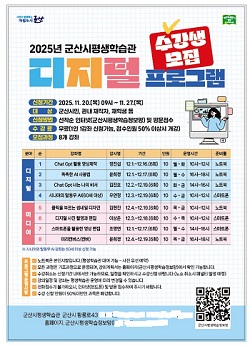 박홍순 교육지원과장은 “생성형 인공지능(AI)는 이제는 우리 생활에 밀접하게 들어와 있는 기술”이라며 “시민 누구나 쉽게 배울 수 있는 실습형 강좌로 구성해 디지털 환경 속에서도 소외되지 않고 능동적으로 참여할 수 있도록 다양한 평생학습 기회를 제공하겠다”고 밝혔다.
