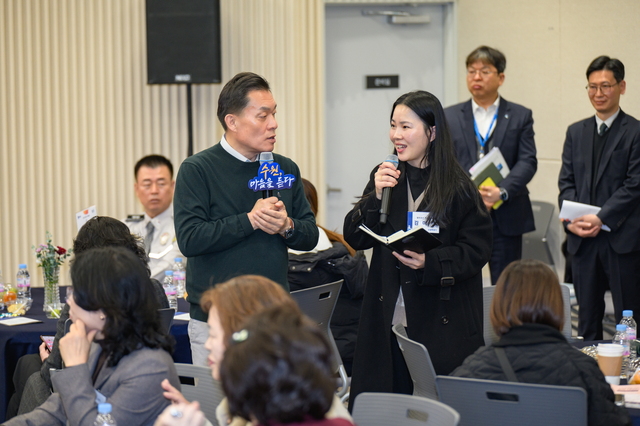 ‘2025 새빛만남- 수원, 마음을 듣다’에서 자주 볼 수 있는 풍경이다. 시민이 건의 사항을 이야기하면 담당 부서 책임자가 건의한 시민과 일정을 조율해 최대한 빨리 현장을 찾아 문제점을 확인하고 개선 대책을 수립한다.