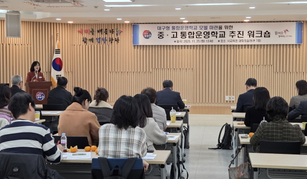 (경북=NSP통신) 김대원 기자 = 대구시교육청은 25일 시교육청 대회의실에서 대구형 통합운영학교 모델 마련을 위한 ‘중·고 통합운영학교 추진 워크숍’을 개최했다.