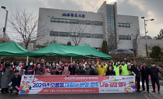 (전북=NSP통신) 김광석 기자 = 전북 군산시 소룡동행정복지센터는 25일 OCI(456040) 군산공장의 후원으로 25일 행정복지센터 앞 공영주차장에서 ‘사랑의 온정(溫情) 나눔 김장’ 행사를 진행했다고 밝혔다.