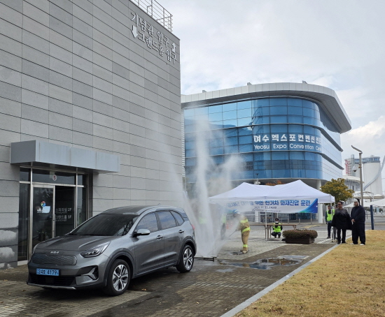 훈련에는 여수박람회장 자위소방대원과 공사 직원 등 30여 명이 참여했으며 전기차 배터리 열폭주 발생 상황을 가상 시나리오로 설정해 △현장 초기 대응 △차량 하부 집중 방수(放水) △배터리 재발화 방지 등 단계별 절차를 점검했다.