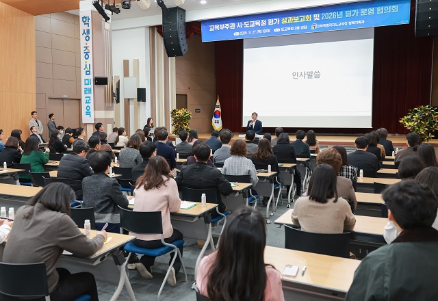 (전북=NSP통신) 김광석 기자 = 전북특별자치도교육청은 27일 본청 2층 강당에서 ‘교육부 주관 시도교육청 평가 성과보고회 및 2026년 평가 운영 협의회’를 개최했다고 밝혔다.
