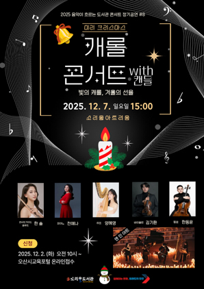 소리울도서관 관계자는 “시민들이 한 해를 따뜻하게 마무리할 수 있도록 겨울 감성을 담은 공연을 준비했다”며 “촛불처럼 은은하고 포근한 음악이 공연장을 채울 것”이라고 말했다.