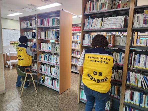 안동교육지원청 학교지원센터 도서관 현장 업무 지원, 학교 요청 현장 맞춤형 지원으로 교원 업무 경감 및 쾌적한 환경 조성 (사진 = 안동교육지원청)