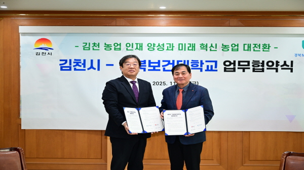 (경북=NSP통신) 김대원 기자 = 김천시(시장 배낙호)와 경북보건대학교(총장 이은직)는 지난 11월 28일 ‘김천 농업 인재 양성과 미래 혁신 농업 대전환’을 위한 업무협약을 체결했다.