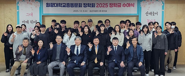 (전북=NSP통신) 김광석 기자 = 원광대학교총동문회장학회(이사장 김지형)는 3일 원광대 숭산기념관에서 장학금 수여식을 열고 재학생 50명에게 100만원씩 총 5000만원의 장학금을 지급했다고 밝혔다.