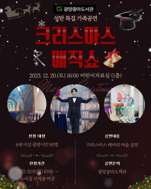 김현숙 도서관과장은 “아이들이 이번 공연을 통해 새로운 상상과 창의의 세계를 경험하고 마술의 원리를 탐구하는 재미를 느끼길 기대한다”며 “도서관을 찾은 가족 모두가 함께 웃고 공감하며 따뜻한 성탄의 추억을 만들어 가길 바란다”고 말했다.